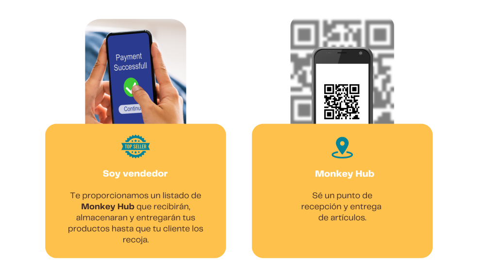 DROPMEE proporciona un listado de Monkey Hub: puntos de entrega dispuestos a recibir y entregar los productos que vendas en redes sociales.